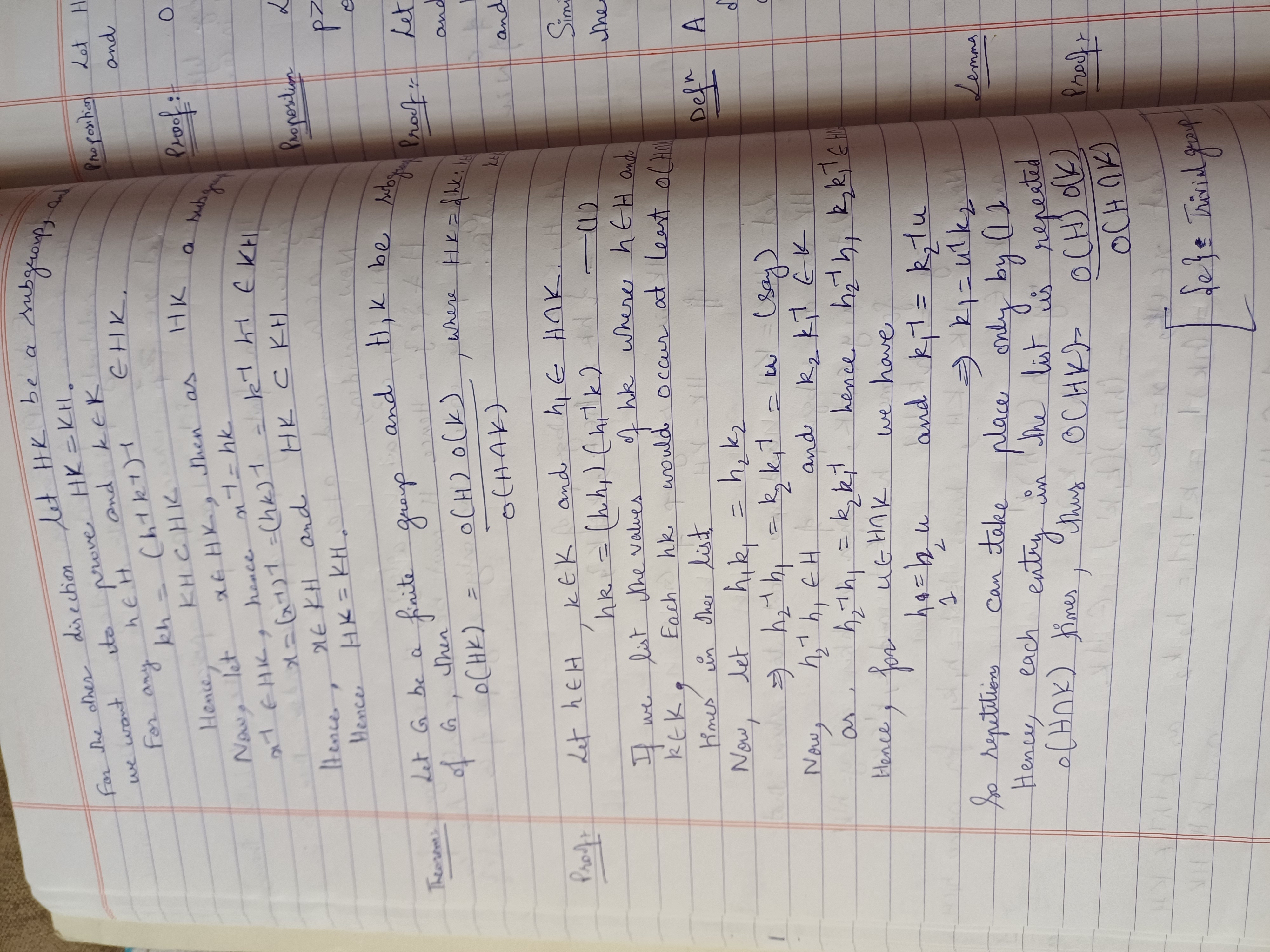 Theorem based on subgroup